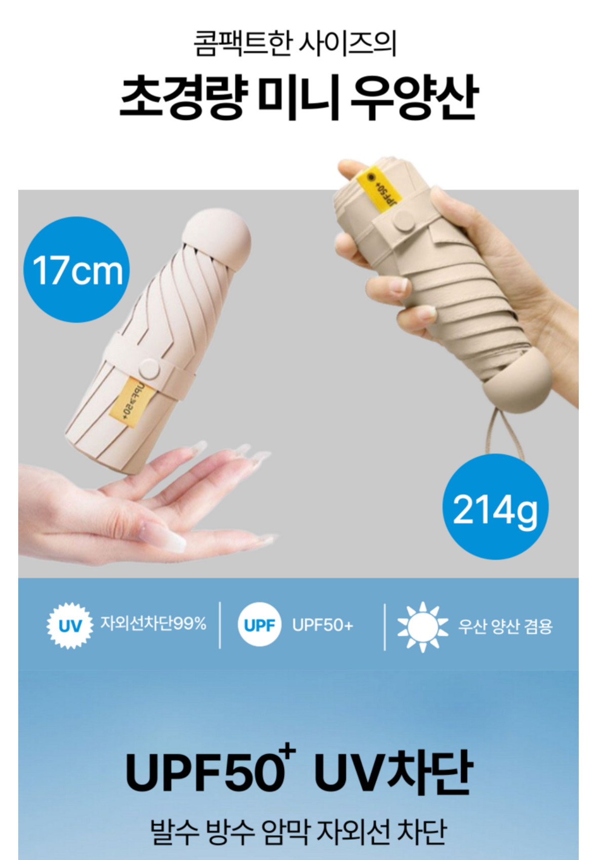 ✔️ UV 차단 + 방수 겸용으로 여름철 완벽 대비