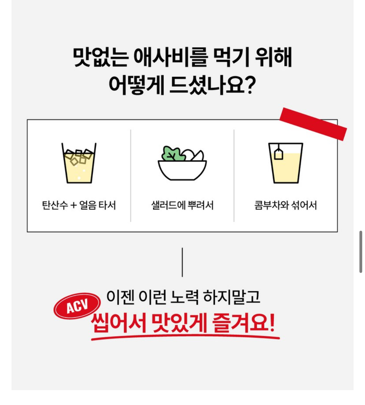 • 사과식초의 상큼함은 유지하면서