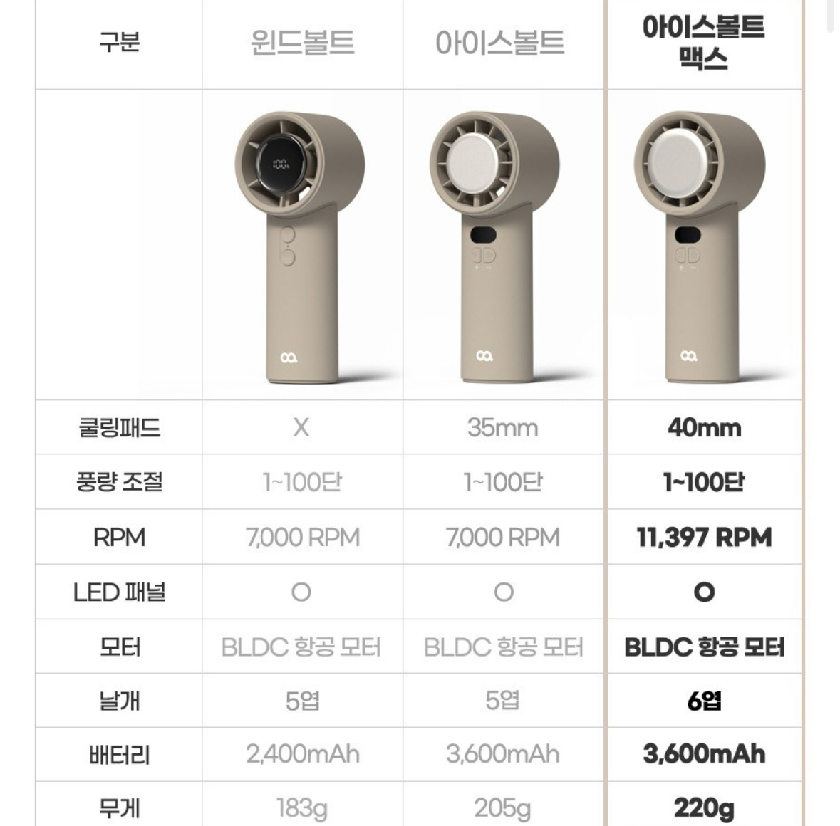 • 상품명: 오아 아이스볼트맥스 미니 급속 냉각 핸디 휴대용 선풍기